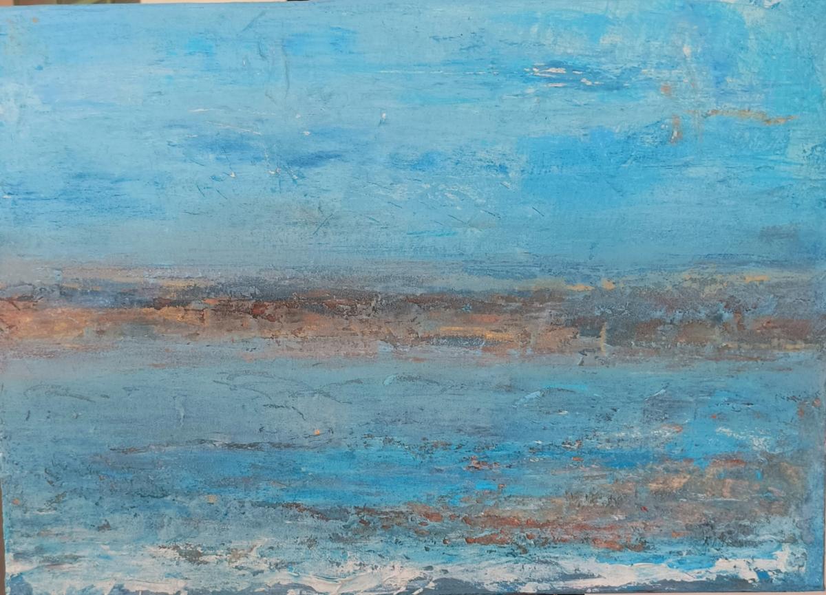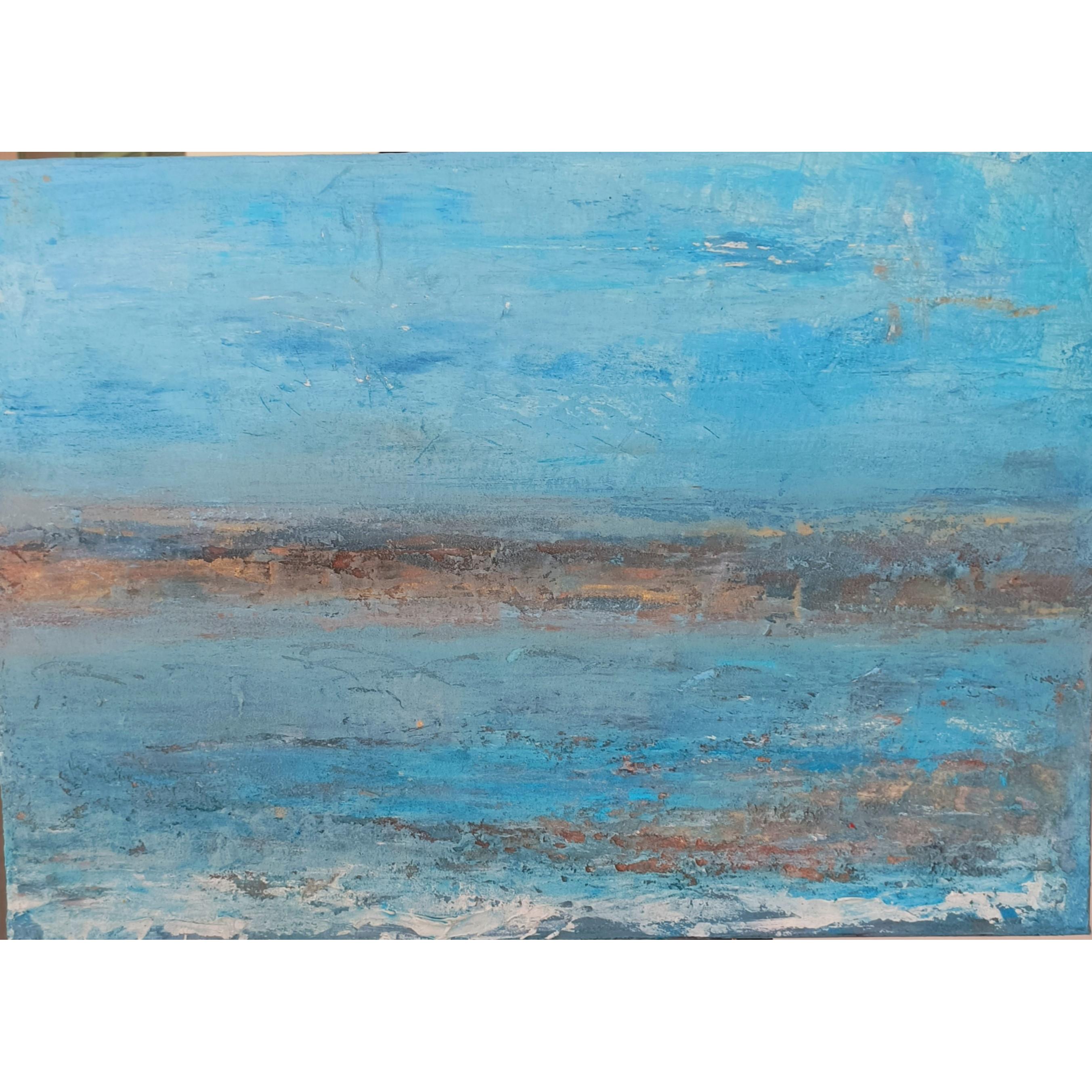 I riflessi e le sfumature di blu,come occhi dell’anima che, profondi, impenetrabili e misteriosi, sono semprealla ricerca della connessione con l’universo e con la sua magia. Dai colori caldi dell’orizzonte affiora unritmo nascosto, fragile eppure potente, che unisce terra e cielo, terra eacqua, tempo e memoria. “Ritmo nascosto” che evoca cio’ che pulsa dentro,invisibile ma vitale, celato nella trama stessa della materia.